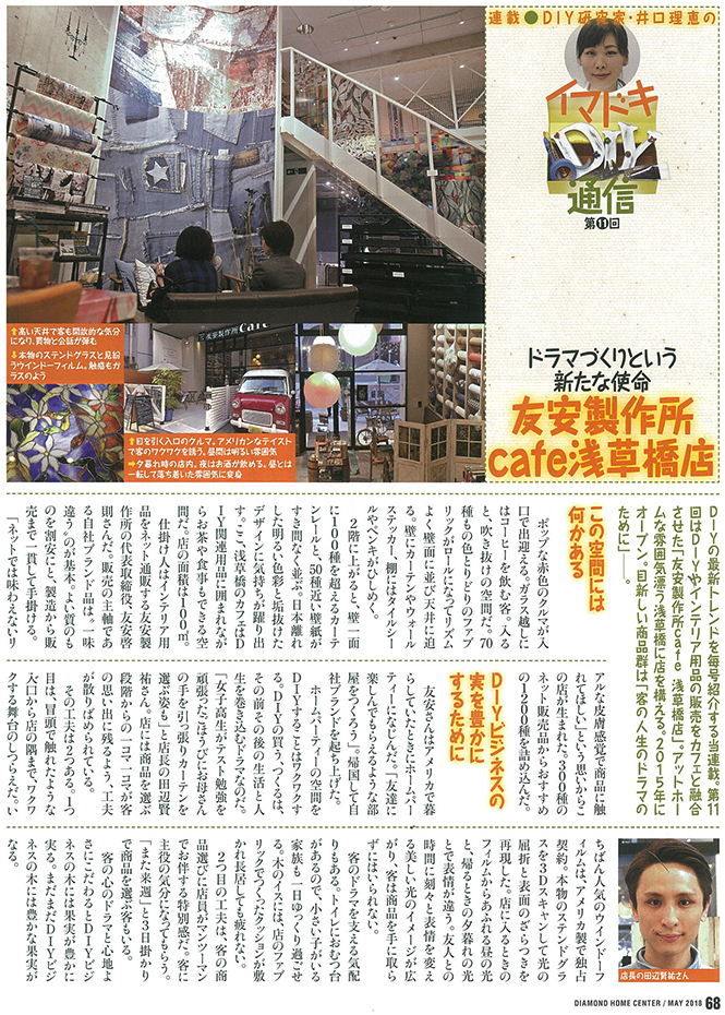 ダイヤモンド・ホームセンターにて「友安製作所Cafe 浅草橋」が紹介されました!